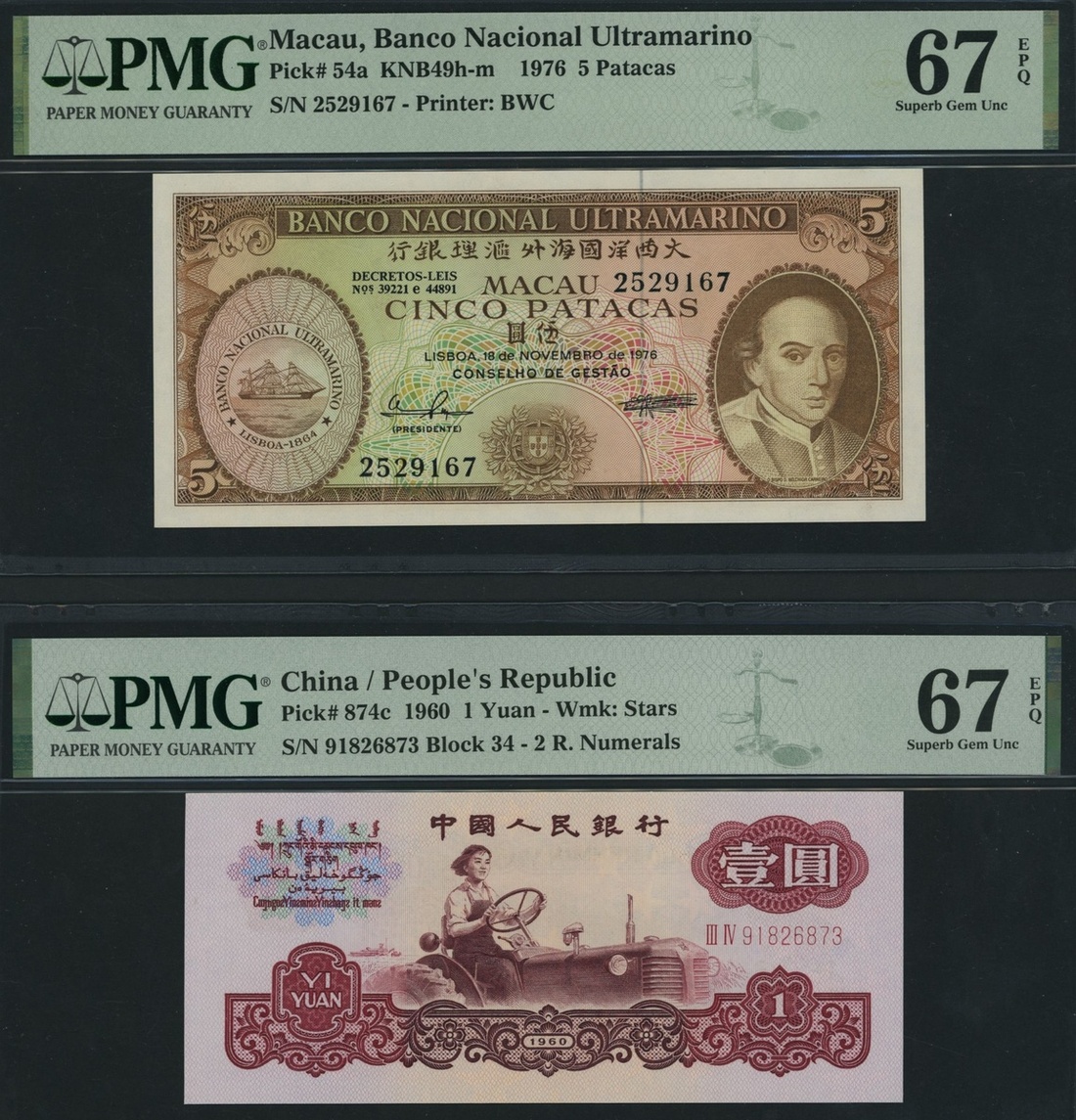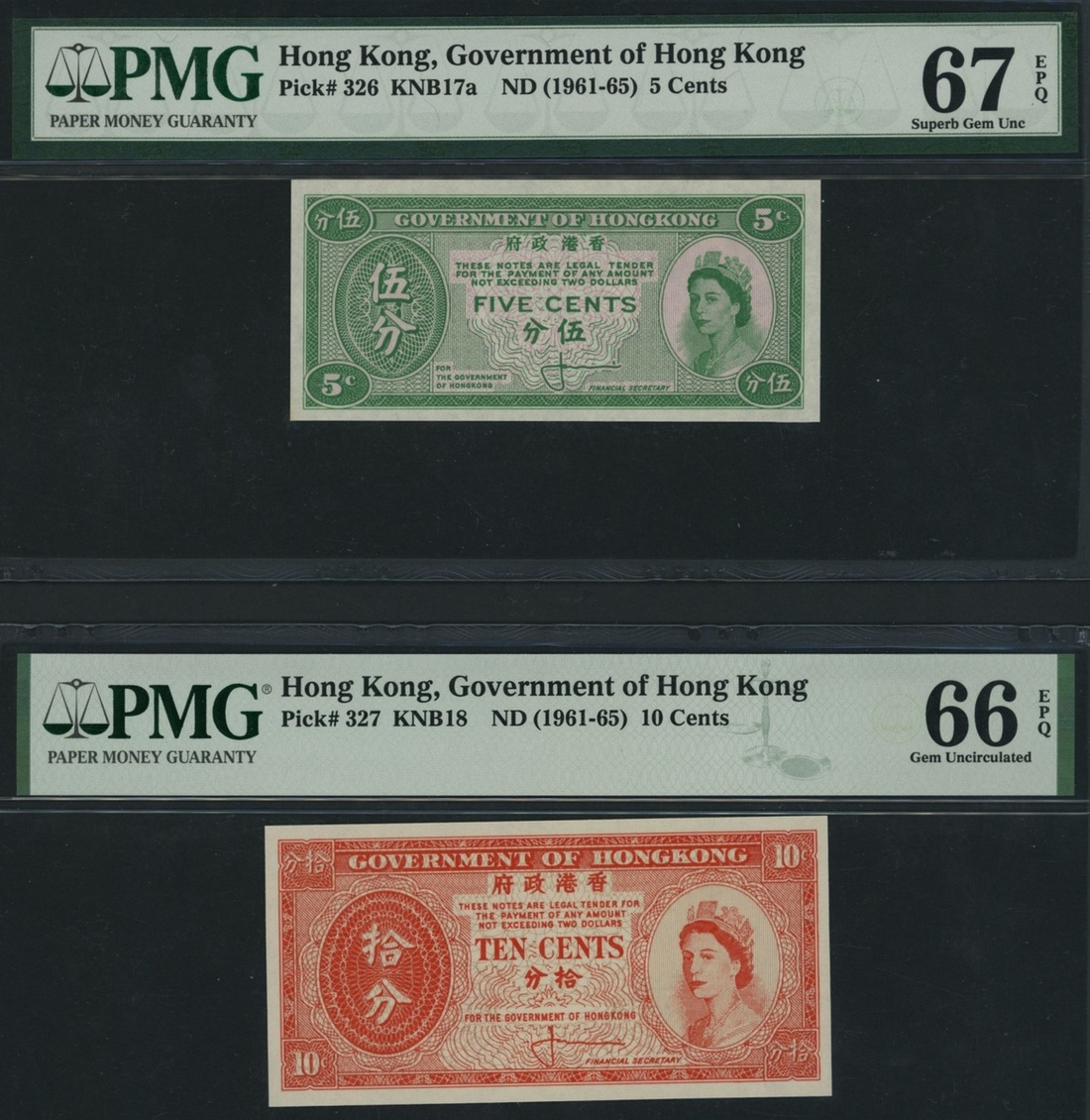 (Pick 74c, 181d, 182a, 182b, 182h, 192c, 194a, 198d, 286c, 287b, 330b, 331d, 326, 327, 54a, 874c), in PMG holders 65 EPQ Gem Uncirculated to 67 EPQ Superb Gem Uncirculated (17 notes)