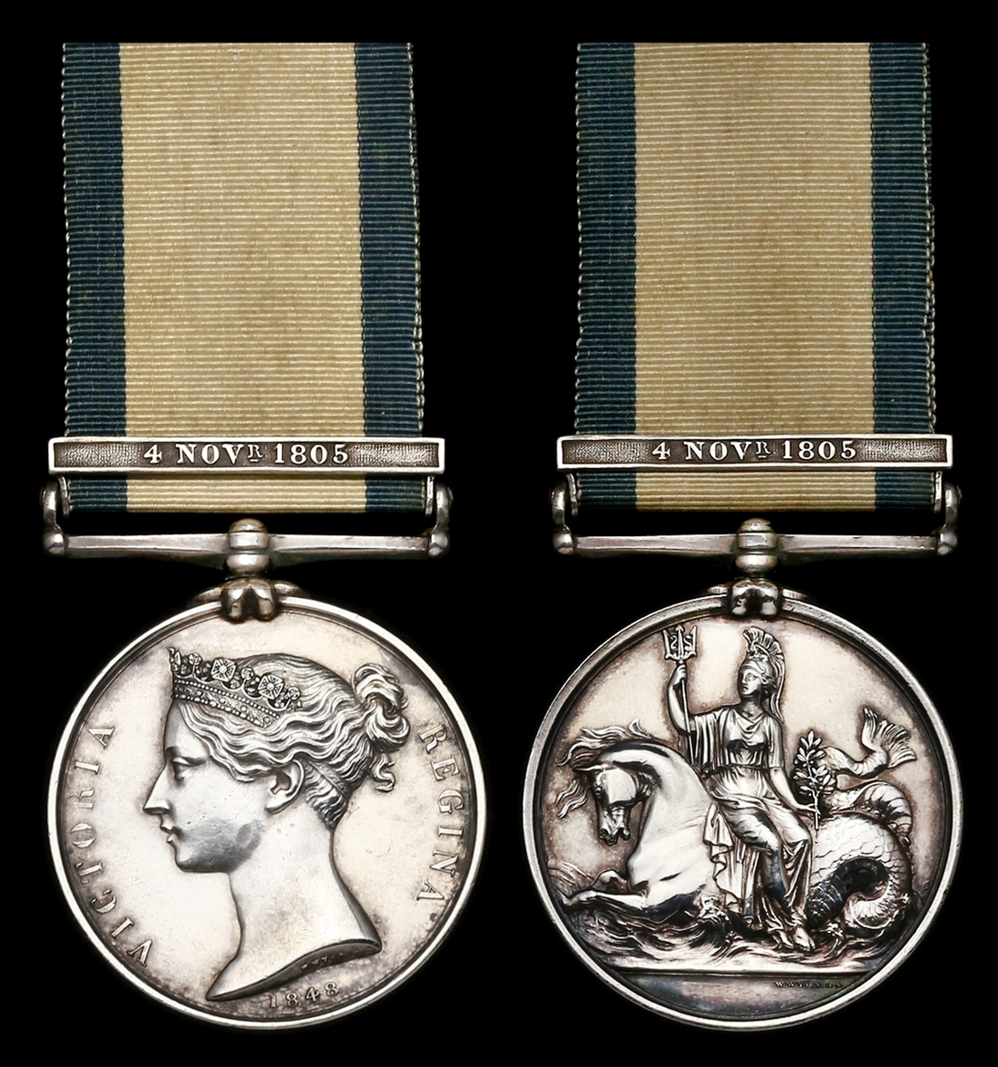 Just 293 '4 Novr. 1805' issued in total, with 15 clasps to Aeolus, 7 of them to Officers.