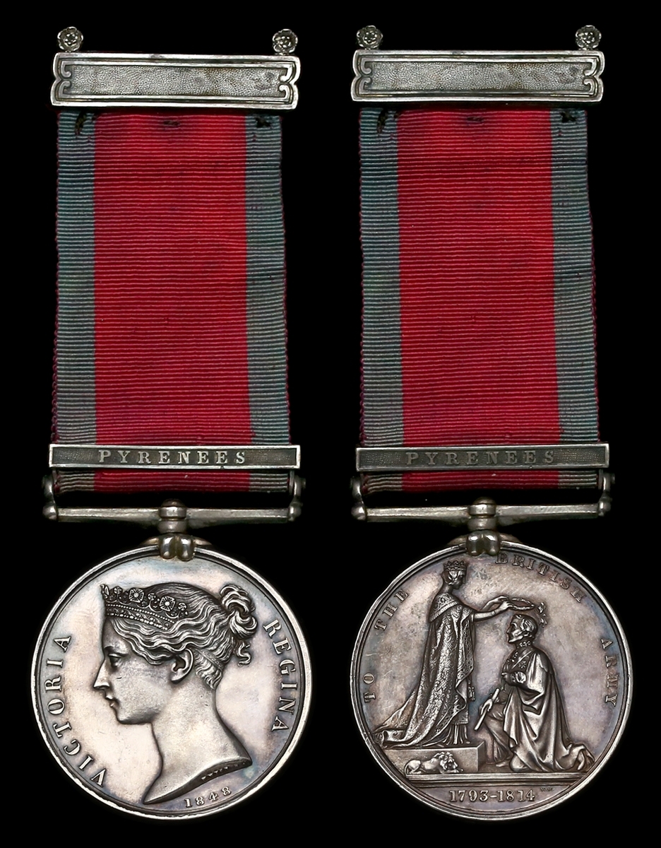 Military General Service 1793-1814, 1 clasp, Pyrenees (M. Wreford, Purveyor's Clerk.), mounted as worn with top riband device, good very fine