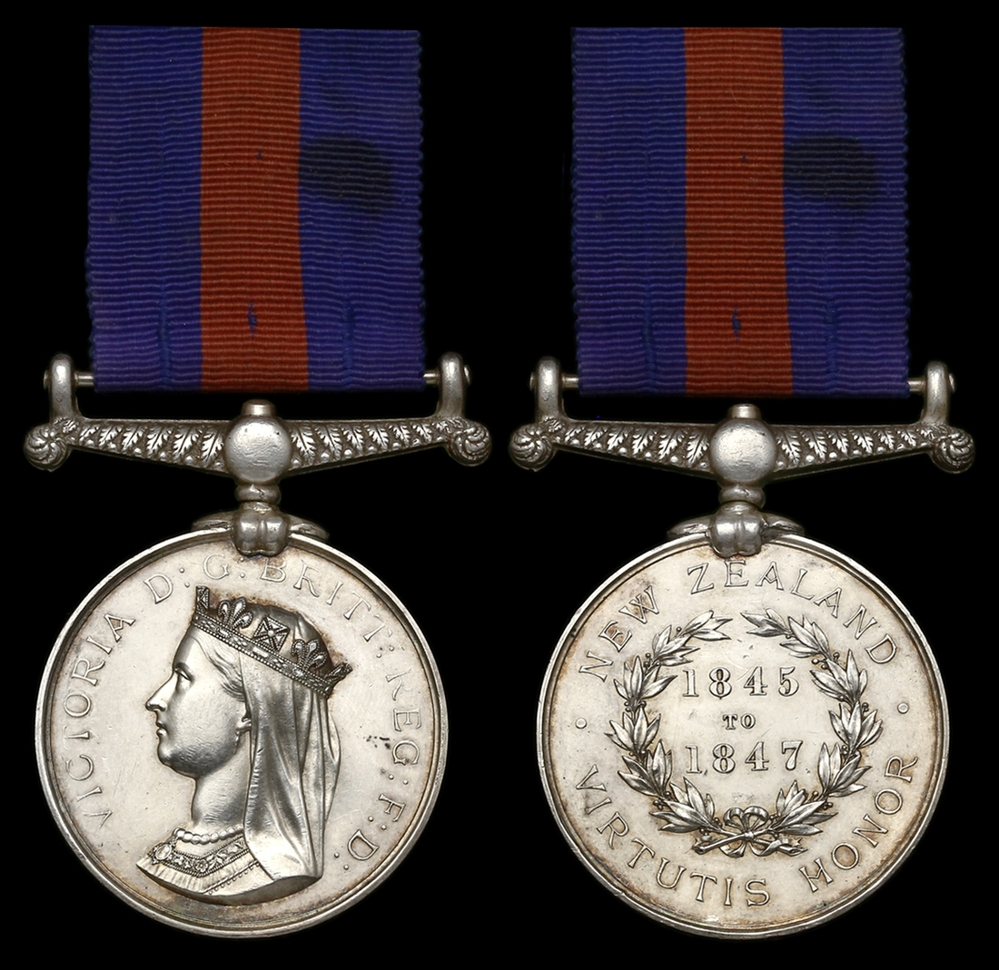 New Zealand 1845-66, reverse dated '1845 to 1847' (Mr Charles Scott Naval Cadet, H.M.S. 'Racehorse'), officially impressed naming, with silver riband claw buckle, some solder under claw, good very fine