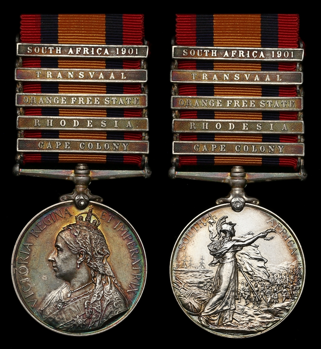 Queen's South Africa 1899-1902, 5 clasps, Cape Colony, Rhodesia, Orange Free State, Transvaal, South Africa 1901 (Lt. & Adjt. A. R. J. Dewar. N.Zea:Cont:), light contact mark, very fine