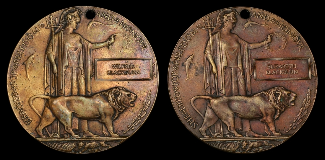 The Great War Bronze Memorial Plaque awarded to Private W. Blackburn, 7th Battalion, East Lancashire Regiment, who died of a combination of severe wounds and Tuberculosis on 14 February 1918