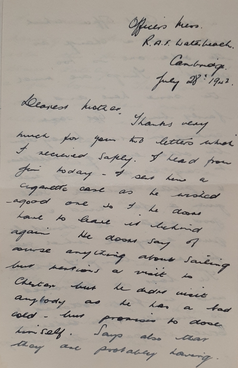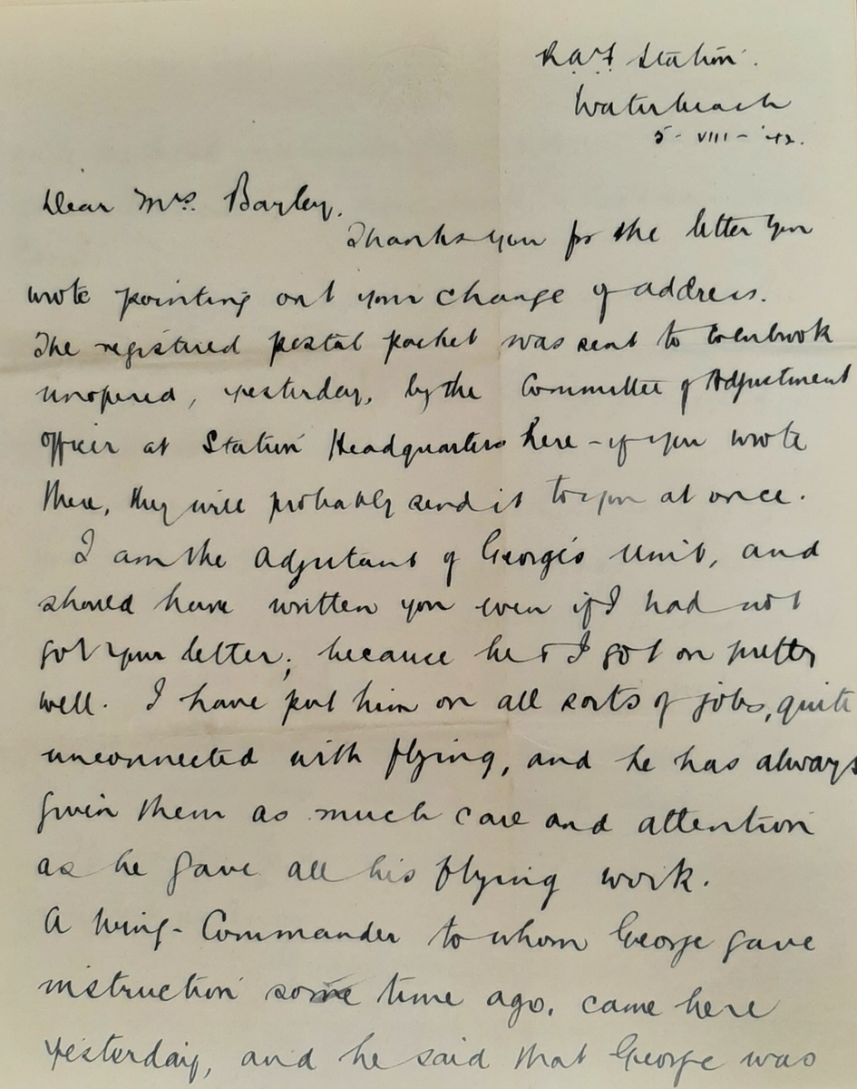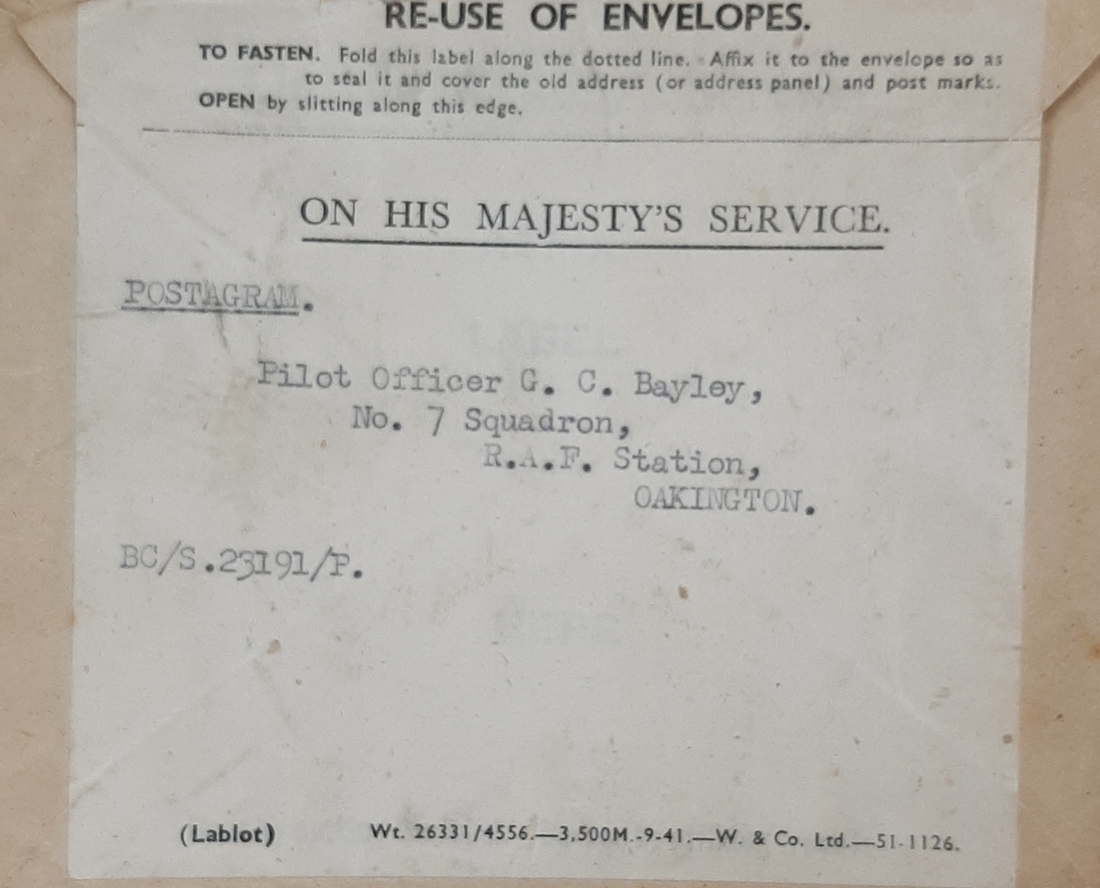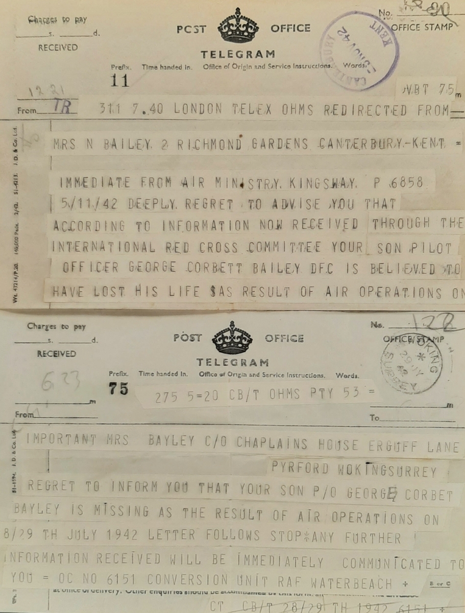 Telegrams and letters confirming his death as well as a letter of condolence from the Adjutant of his Squadron.