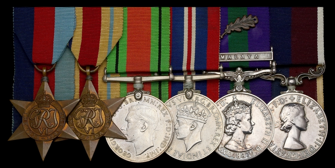 Sold with a complete run of his R.A.F. Pilot's Flying Log Books (7), covering the periods December 1941 to November 1952; December 1952 to November 1955; December 1955 to March 1957; April 1957 to February 1958; March 1958 to August 1960; September 1960 to April 1961 and February 1965 to February 1969, together with a quantity of copied research, including his service record and newspaper reports on his Malayan mercy mission.
