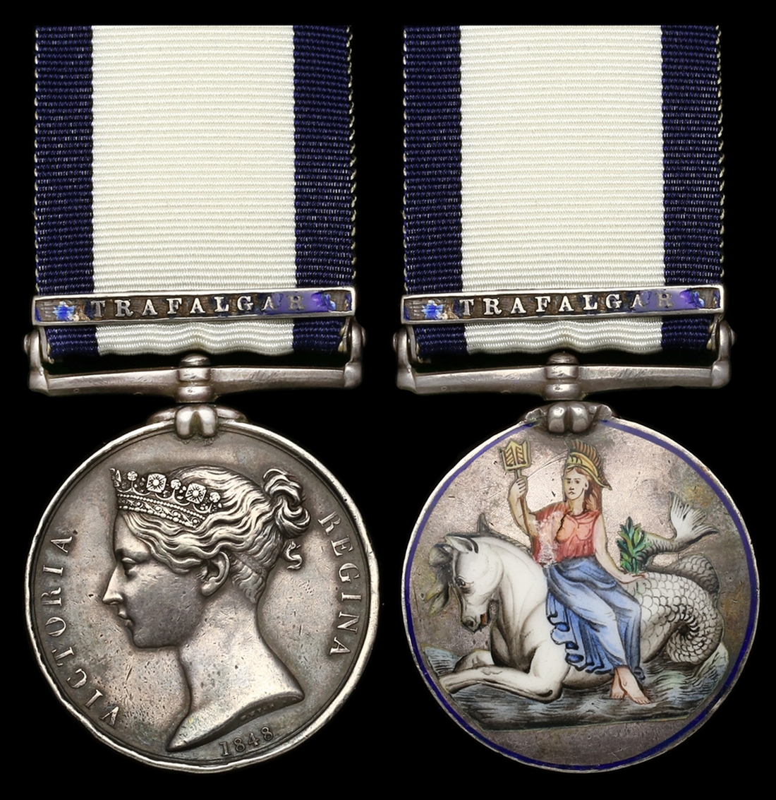 (x) Naval General Service 1793-1840, 1 clasp, Trafalgar (Robert Aspinall), reverse neatly removed, polished and attractively enamelled to depict the officially-struck design, clasp field additionally enamelled with pin and catch fitting to reverse, naming somewhat removed around lower portion of letters but still legible, good fine