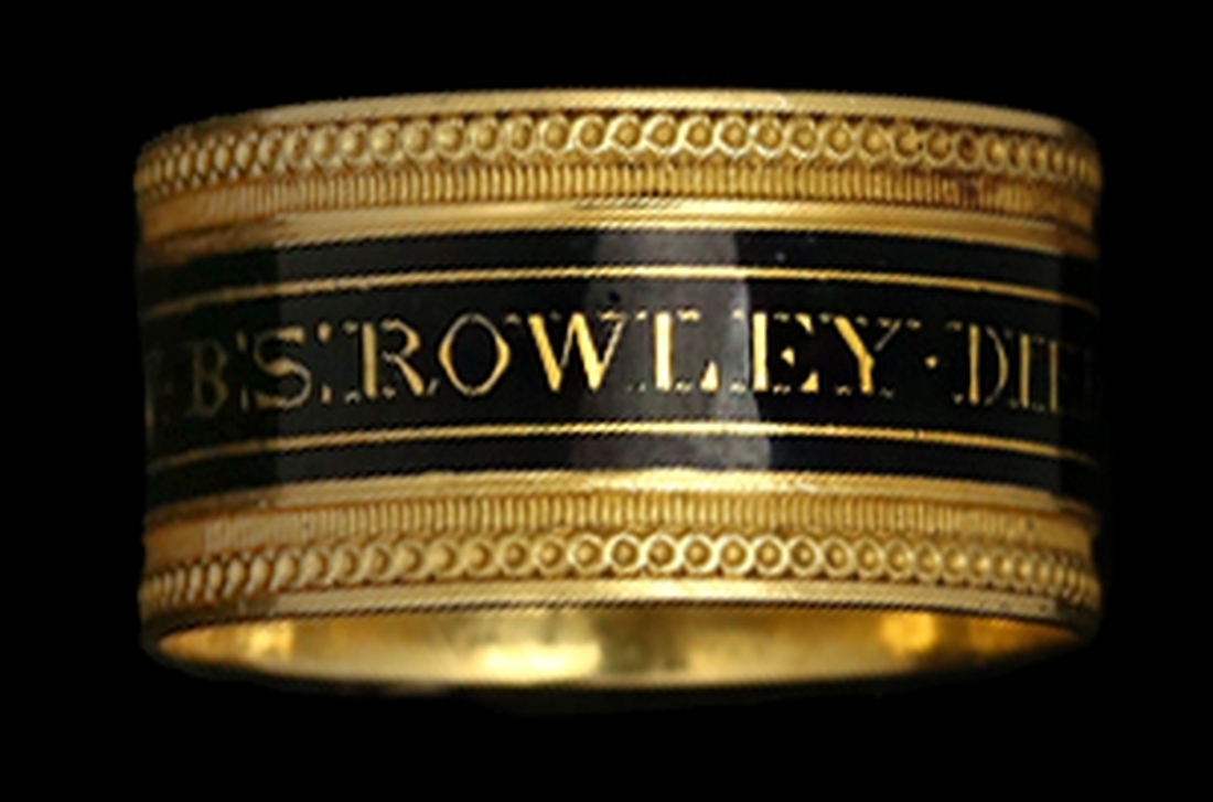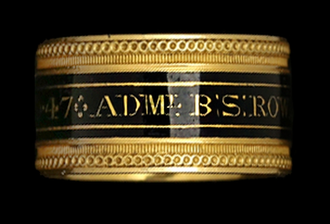 Mourning Ring, gold and enamel, inscribed around the outer edge in gold letters on a black enamel field: 'Adml. B: S: Rowley. Died 7. Oct: 1811. Aged. 47', maker's mark 'T.M.', hallmarks for London 1811, good very fine and rare