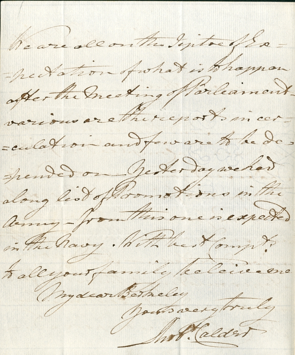 Autograph letter written and signed by Calder in Plymouth, dated 5 January 1812, in very fine condition for its age;