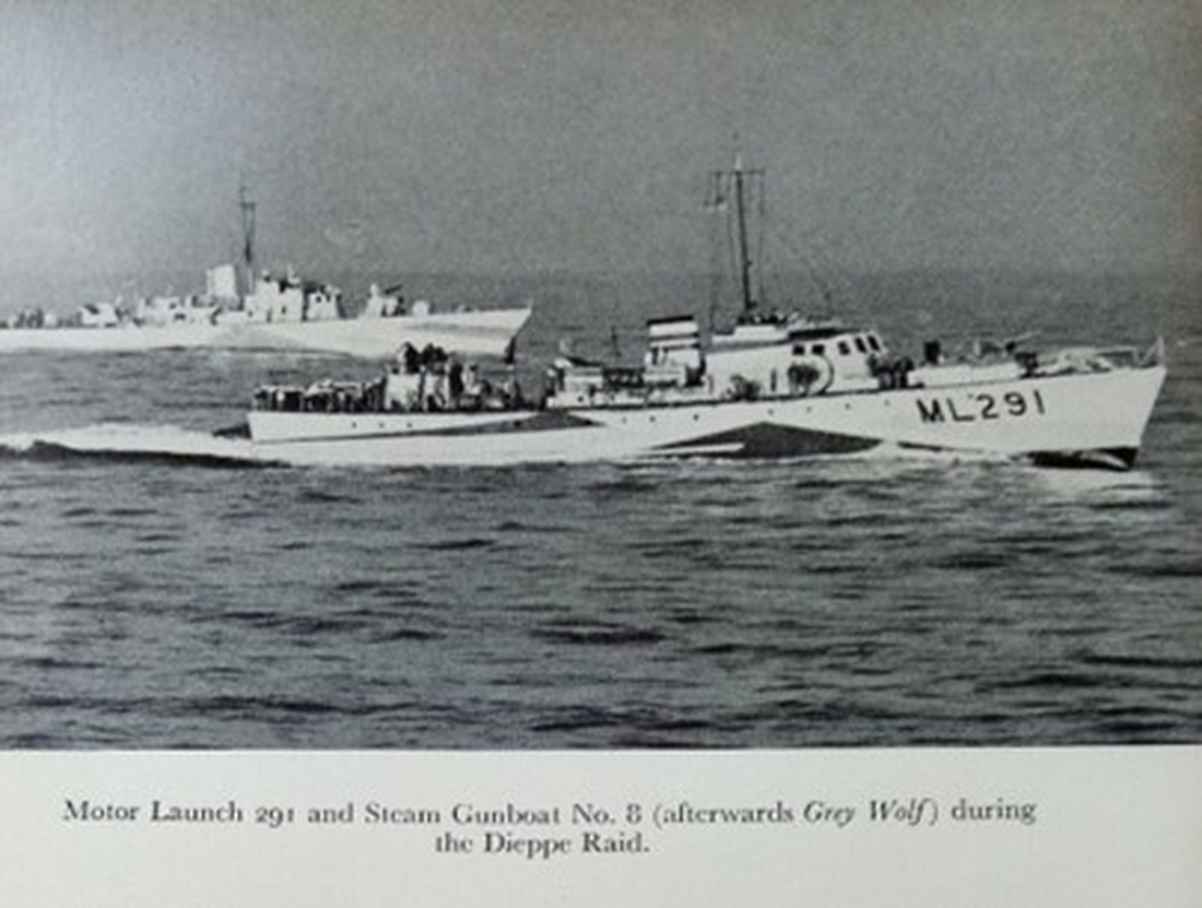 ML-291 was commanded by Lieutenant J. B. C. Lumsden D.S.C. and played an active role in the disastrous Dieppe raid on 19 August 1942. Having steered through a mine field to successfully extract soldiers from Green Beach, extracts from her Log Book suggest that they opened fire on an enemy trawler and later picked up survivors and enemy airmen, transferring them to Berkeley & Albrighton, before searching for further aircrew. The Naval Force Commander ordered Goulding to take a Motor Launch for support and to attempt an evacuation. The Lieutenant-Commander duly boarded ML-291 at 1100hrs and as none of his own landing craft were in the vicinity he collected some L.C.A. and one L.C.S. and proceeded towards the beach. Lieutenant-Commander McMullen was sent to assist him. Very heavy fire was opened as the craft approached and they were forced to retire.