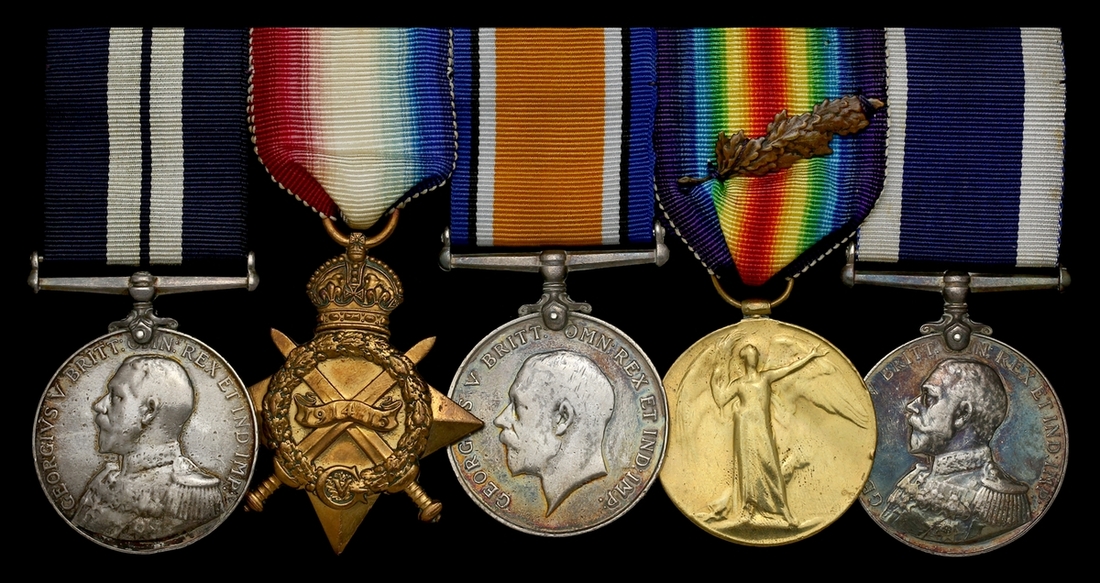 The superb 'V.C. Winning, Q-Ship action' D.S.M. group of five awarded to Leading Seaman T. S. Cunningham Royal Navy, who served with Stock Force when her skipper, Lieutenant Harold Auten, won his Victoria Cross