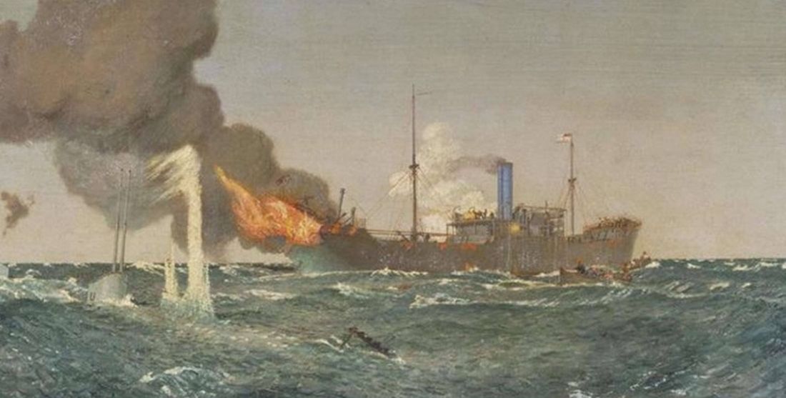 'In accordance with the training, the 'panic' party then began to row down the port side towards the port quarter so as to draw the enemy on, and this manoeuvre succeeded in fooling the German, who now came down the port side as required, being only about three hundred yards away. As soon as the enemy was full on the beam of Stockforce, the latter handed him the surprise packet. It was now 5.40 p.m. as both 4-inch guns opened fire from the Q-ship. The first round from the after gun passed over the conning-tower, carrying away the wireless and one of the periscopes, the second shell hitting the conning-tower in the centre and blowing it away, sending high into the air a man who was in the conning-tower.