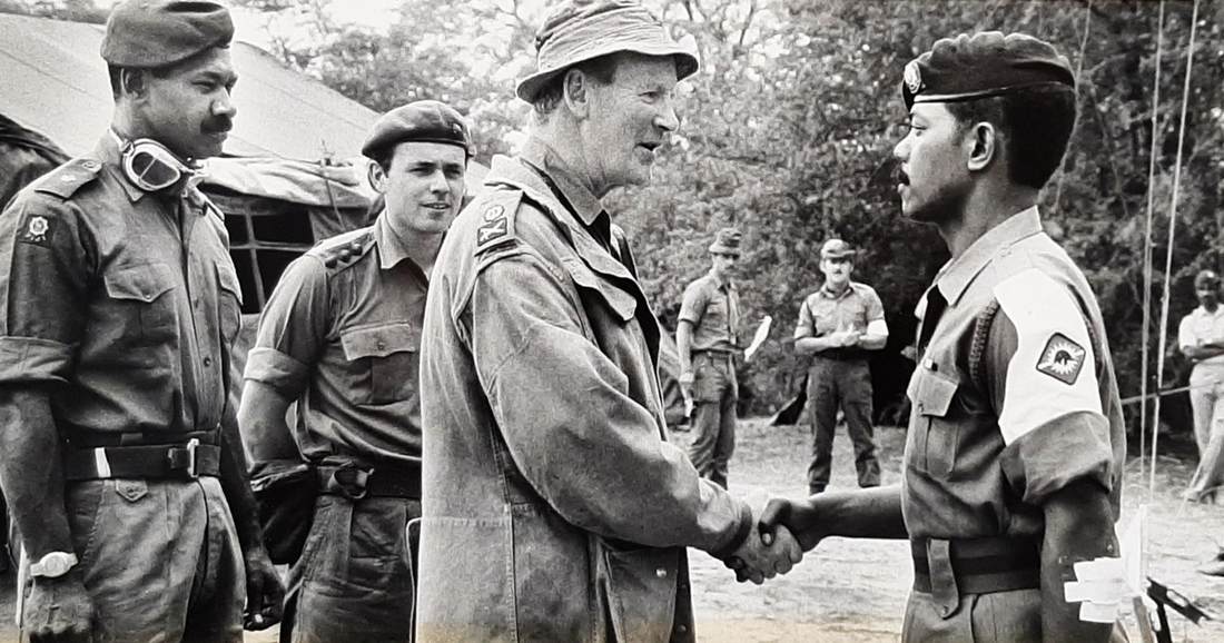 Posted to Malaya the next year he served as a Platoon Commander conducting dangerous patrols in the insurgent held jungles and by family tradition survived a guerilla ambush when a live grenade landed at his feet and failed to explode.