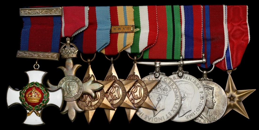 Distinguished Service Order, silver-gilt and enamel; The Most Excellent Order of the British Empire, Officer's (O.B.E.) breast Badge, Military Division, silver-gilt; 1939-45 Star; Africa Star, 1st Army clasp; Italy Star; Defence and War Medals 1939-45; Coronation 1953; United States, Republic, Bronze Star, unnamed as issued, mounted as worn by Spink & Son, sold together with a riband bar for the last, light contact marks, overall very fine (9)