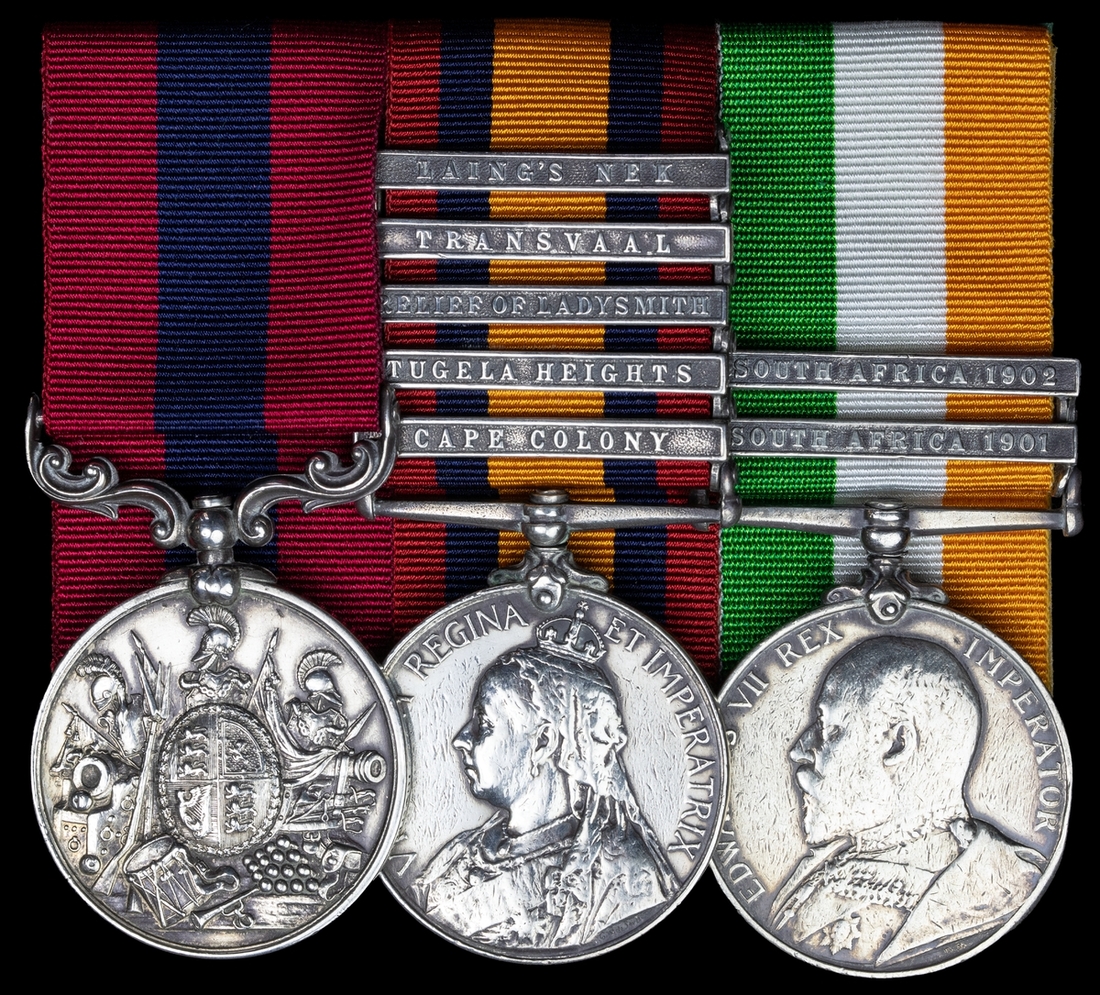 The 'Vaal Krantz 1901' D.C.M. group of three awarded to Sergeant J. H. Brooke, Rifle Brigade