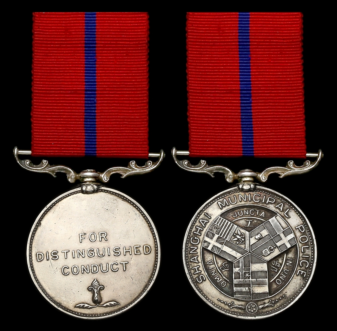 Shanghai Municipal Police, Distinguished Conduct Medal, 1st Class (P.S. No. 112 B. B. Boddy. October 30, 1924.), very fine, together with three of his Shanghai Municipal Police Sports awards, for 1935, 1936 & 1940 (Lot)