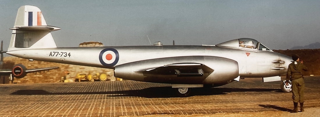 Having then gained his 'Wings' at Point Cook in February 1950, he was posted to No. 77 (R.A.A.F.) Squadron in Korea, in which he remained on active service from December 1950 to October 1951. Up until April 1951, the unit operated in P-51 Mustangs but afterwards it converted to Gloster Meteors.