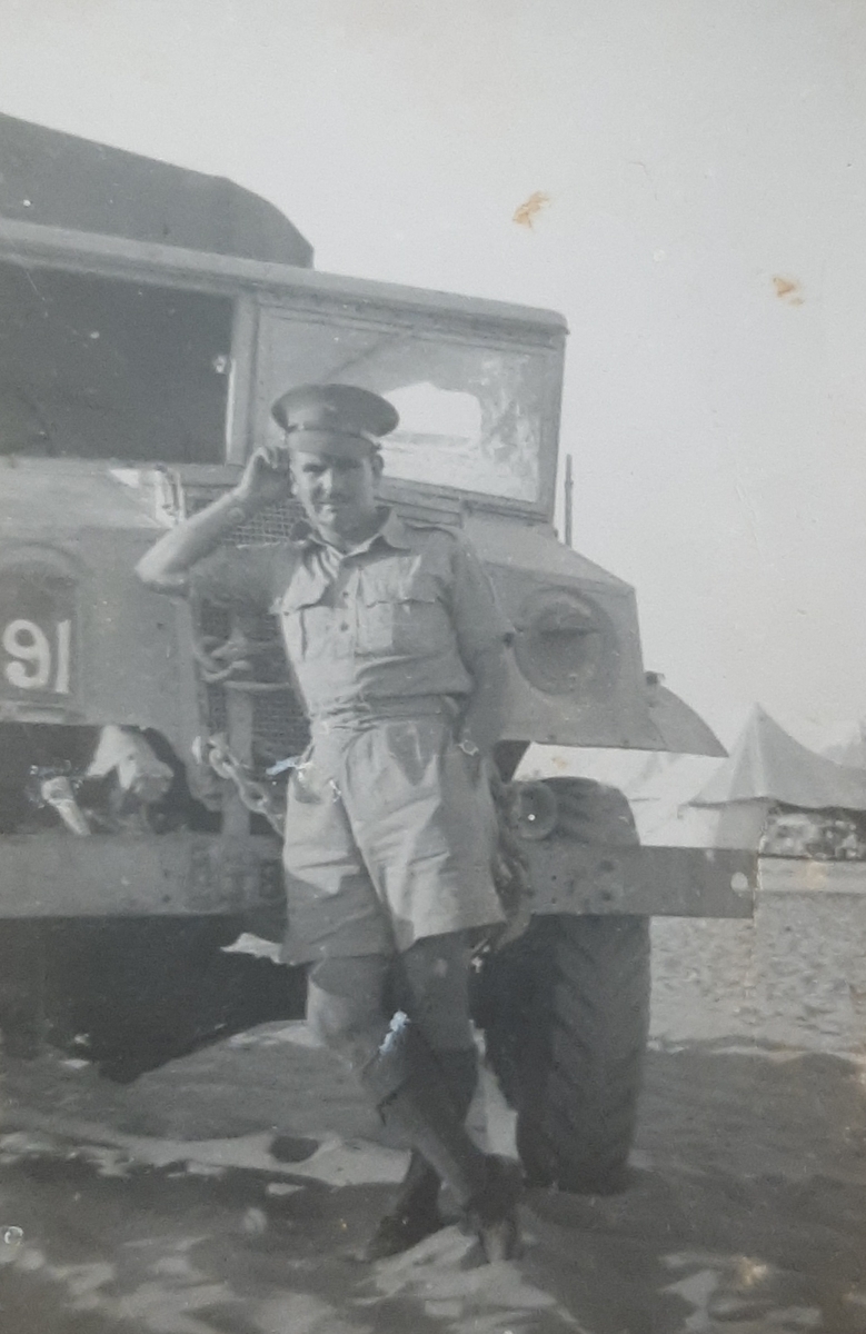 Advanced to C.Q.M.S. on his return to the U.K. following Operation "Dynamo", he was embarked for the Middle East in November 1941 and, following postings to Iraq and Palestine, went into action with as a C.S.M. in the Western Desert in February 1942. Here, then, the scene of his subsequent gallantry on the Gazala line that June, when he was recommended 'for the highest possible award.'