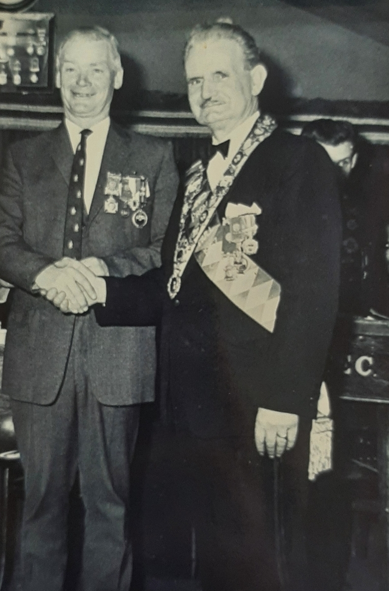 A related R.A.O.B. 'Roll of Honour' jewel, silver-gilt, the reverse engraved, 'Bro. T. A. Mattock, Good Fellowship, Lodge No. 1256, Exalted, 15.9.69'.