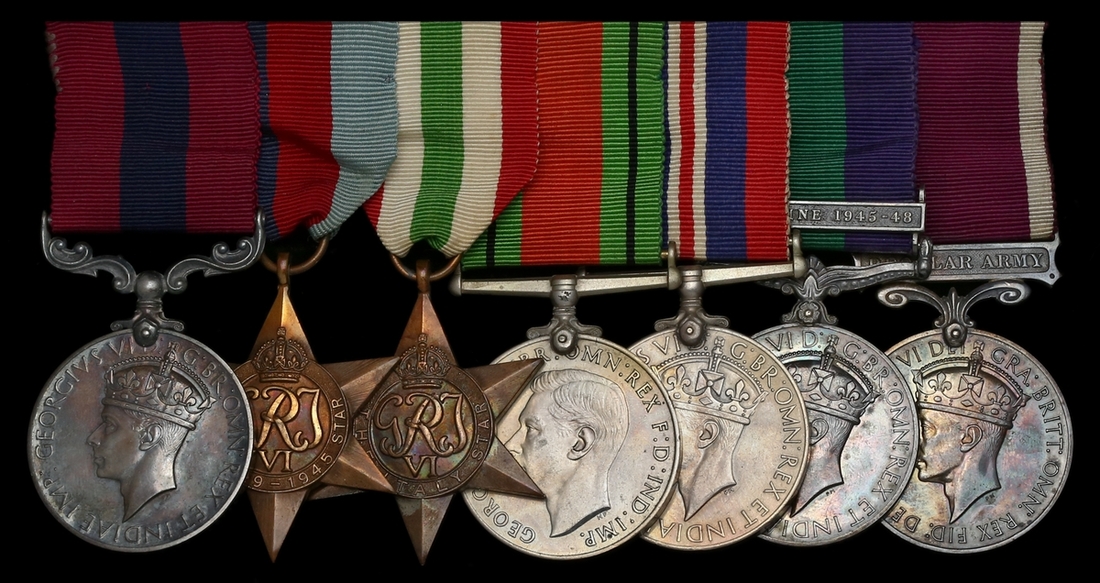 Distinguished Conduct Medal, G.VI.R. (3854714 Sjt. H. Sherriff. Loyal R.); 1939-45 Star; Italy Star; Defence and War Medals 1939-45; General Service 1918-62, 1 clasp, Palestine 1945-48 (3854714 W.O. Cl. 2. H. Sherriff. Loyals.); Army L.S. & G.C., G.VI.R., 2nd issue, Regular Army (3854714 W.O. Cl. 2. H. Sherriff. (D.C.M.) Loyals.) mounted as originally worn, unit of last partially officially corrected, toned, generally very fine or better (7)