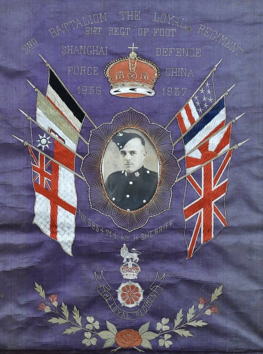 Horace ‘Harry’ Sherriff was born in April 1908. He enlisted in 2nd Battalion, The Loyal Regiment at Boston, Lincolnshire in February 1933, and served with the Battalion in Shanghai, October 1936 - March 1938, and in Singapore, March 1938 - July 1939. Sherriff transferred to the 1st Battalion and served with them as part of the B.E.F. in France from 23 September 1939. The Battalion served as part of the 2nd Infantry Brigade, 1st Infantry Division. Sherriff distinguished himself as part of a platoon of ‘B’ Company which had formed a bridge guard at Pont-a-Chin, a hamlet by the River Scheldt, situated three miles north-west of Tournai. The remainder of May was spent fighting as part of the rearguard to enable the Dunkirk evacuation. The Battalion eventually moved back to occupy the fortified town of Bergues (just short of 6 miles south of Dunkirk, and is linked to Dunkirk by the Bergues Canal). Sherriff was amongst the last British troops to be evacuated to the UK on the night 2/3 June 1940.