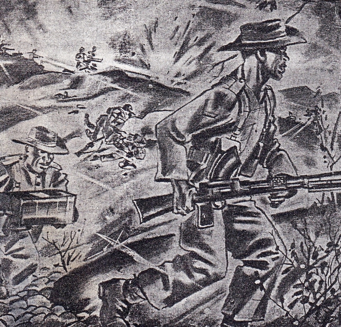 ‘A few weeks after the siege of Moyale, the Italians invaded British Somaliland with an army of 25,000 men, 27 tanks, 100 armoured cars, and at least 20 big guns. Our little army consisted of 1,500 men, who came from Britain, India, and East Africa. There were the Somaliland Camel Corps, the 1st Northern Rhodesian Regiment, the 2nd Battalion, King’s African Rifles, and the East African Light Battery. On came the Italians, through Hargeisa (the headquarters of our government), through Kodi Yera, into the mountains, and down towards the coastal plains. Here, on the road from Hargeisa to Berbera, they had to pass through a narrow place called the Tug Argan Gap and there they found our forces waiting for them. We were outnumbered by 15 to 1, but our men were determined that the enemy should not get through the pass until they had had to fight for it very hard. At this time the Italians had not yet become demoralised by many defeats and they still thought that they were brave and skilful fighters. They surged forward like wildebeeste charging blindly, but the African Askaris were like lions - brave and cunning.