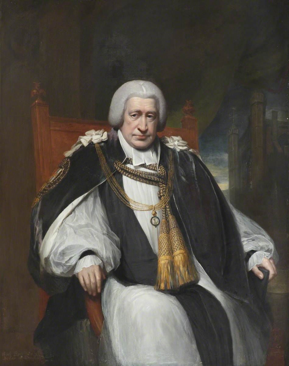 Since the time of William of Edington, Bishop of Winchester and first Prelate of the Most Noble Order of the Garter (died October 1366), this office has always been held by his successors at Winchester, a senior bishopric of the Church of England. At the time this Badge was made, The Right Reverend and Honourable Brownlow North was Bishop of Winchester and Prelate of the Order (in office 1781 - 1820); a portrait by Henry Howard R.A. (1769 - 1847) depicts North in the traditional Prelate's dress, which includes a Badge of this style and design prominently displayed and suspended upon a golden chain.