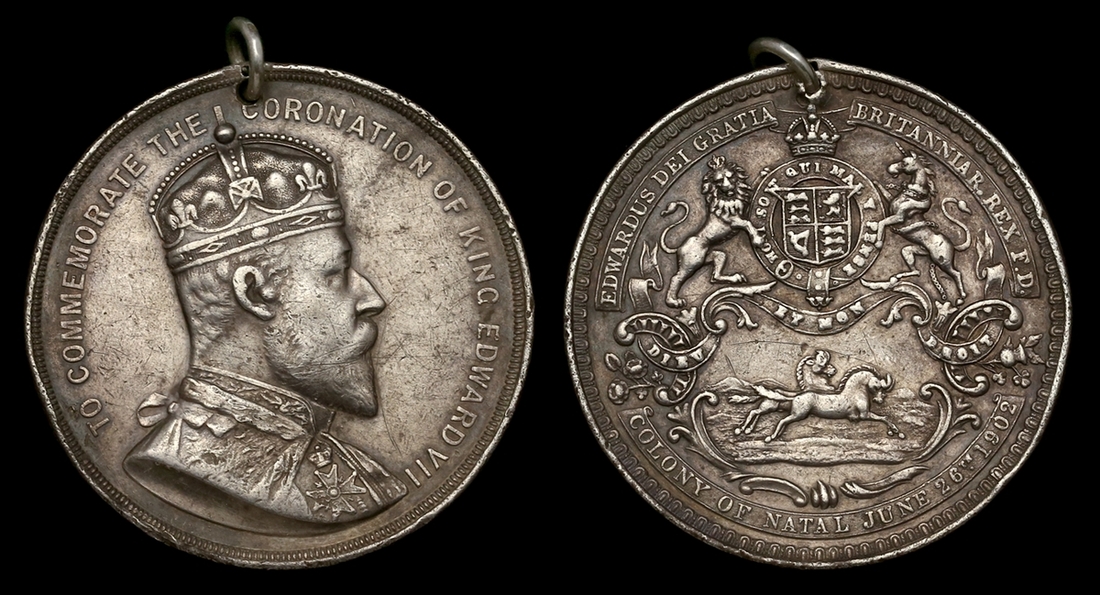 Natal Coronation 1902, large silver Medal, 51mm, by Joseph & Sons, Port Elizabeth, pierced with ring for wearing, very fine