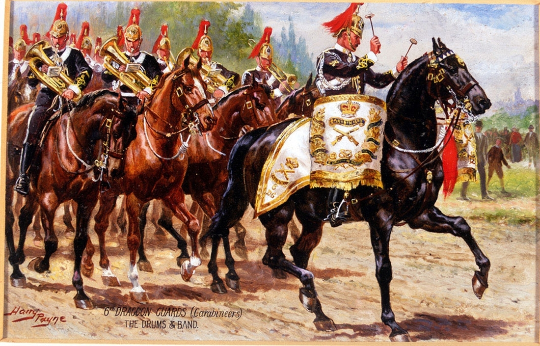 An impressive framed musical banner of the 6th Dragoon Guards (Carabiniers)
