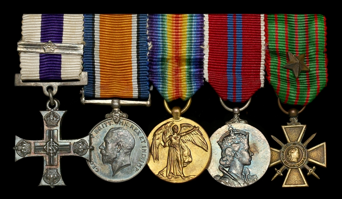 Military Cross, G.V.R., with Second Award Bar; British War and Victory Medals; Coronation 1953; France, Third Republic, Croix de Guerre, bronze with silver star upon riband, mounted as worn by Spink & Son, good very fine (5)