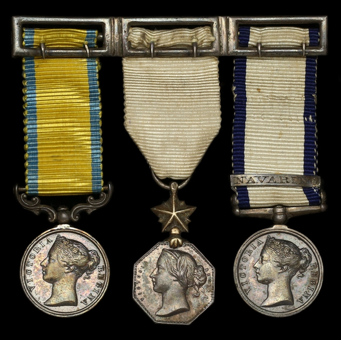 Baltic 1854; Arctic 1857; Naval General Service 1793-1840, 1 clasp engraved, Navarino, mounted as worn in that order by Hunt & Roskell with silver-gilt retaining pin, good very fine (3)