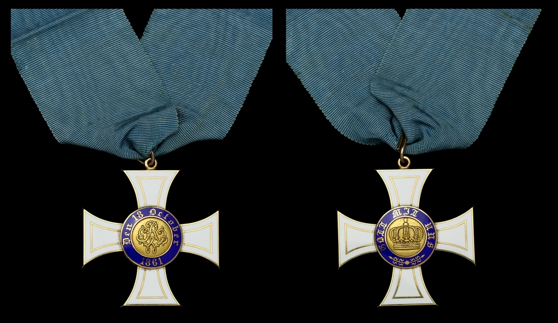 (x) Germany, Prussia, Order of the Crown, Commander's neck Badge, 53mm, gold and enamel, maker's initials between arms, good very fine, with section of neck riband
