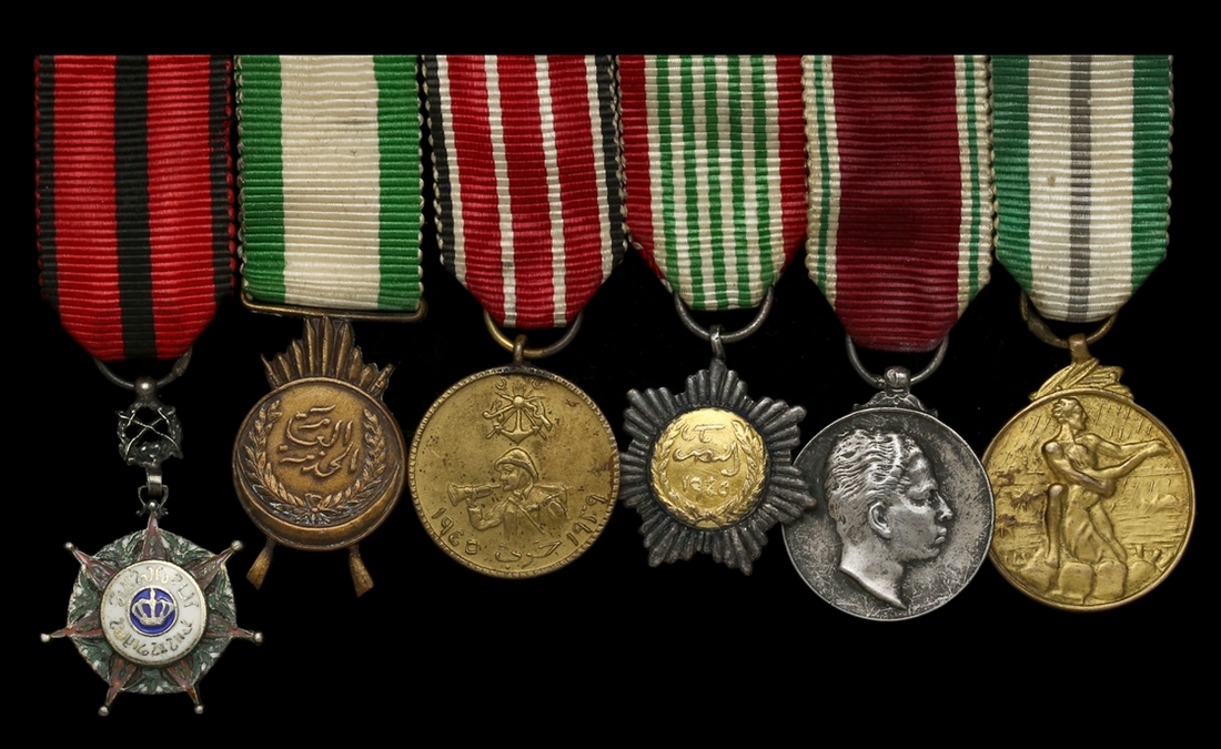 Iraq, Kingdom, Order of Rafidain, Military Division Badge; Active Service Medal; 1939-45 War Medal; Victory Medal; Faisal Coronation; Flood Medal, mounted as worn, very fine (6)