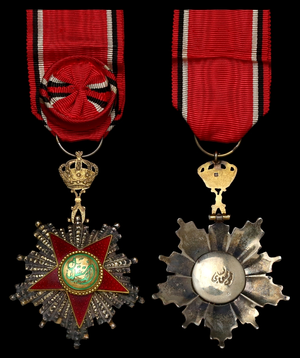 Libya, United Kingdom & Kingdom of Libya (1951-69), Order of Independence, 5th Class breast Badge, with rosette upon riband, by Tewfik Bichai Fournisseur de S.M. le Roi, 76mm including crown suspension x 50mm, silver, silver-gilt and enamel, marks to reverse, nearly extremely fine, in fitted case of issue