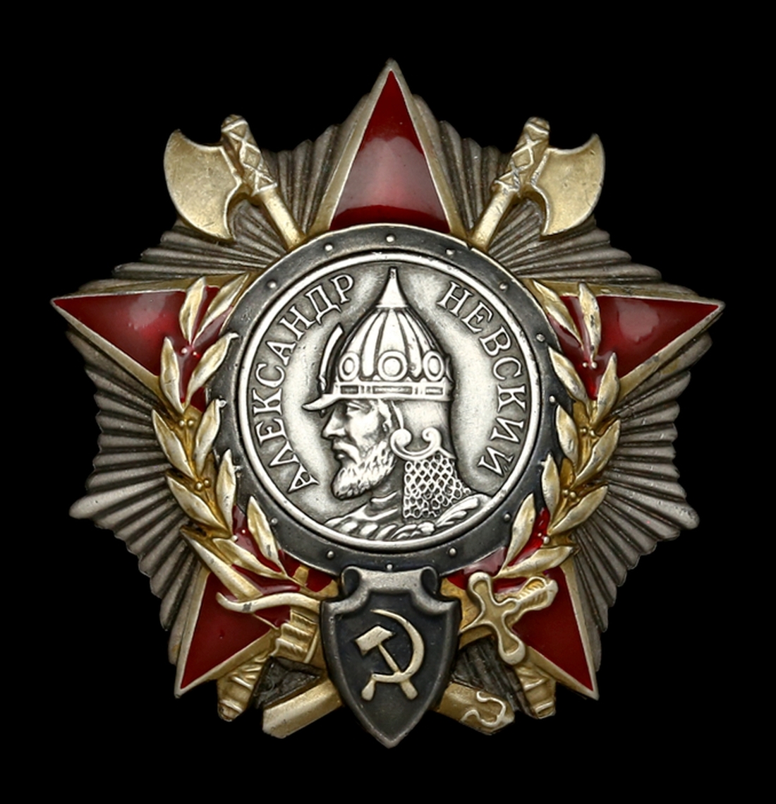 Russia, Soviet Union, Order of Alexander Nevsky, Type 2, screwback breast Badge, reverse officially numbered '9703', good very fine