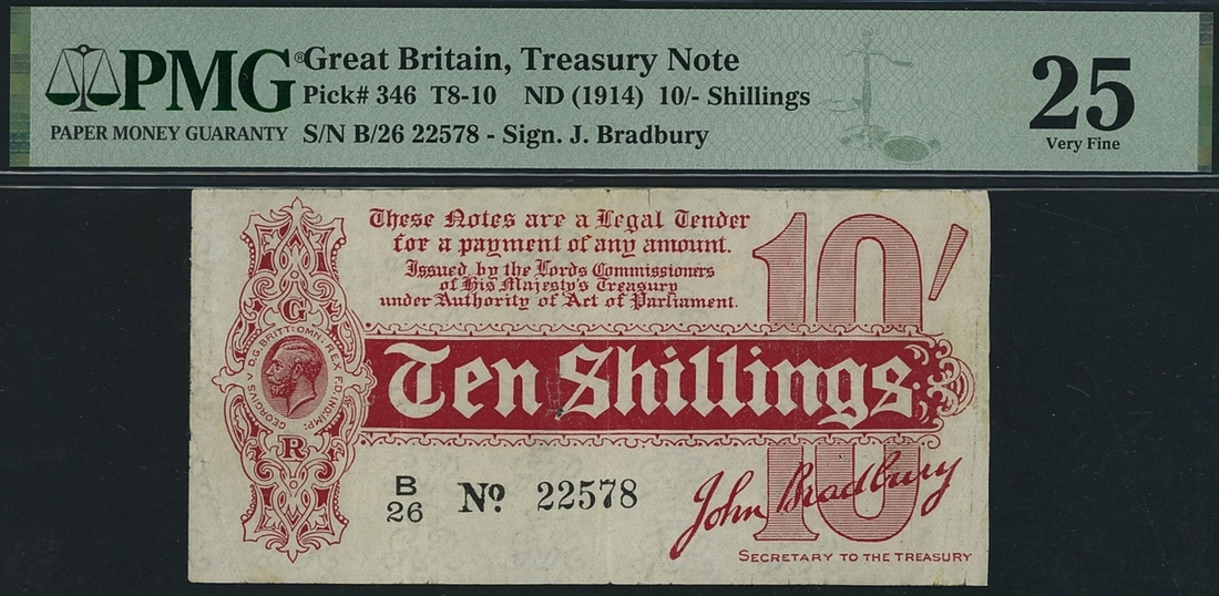 Treasury Series, John Bradbury, 10 Shillings, ND (1914), serial number B/26 22578,