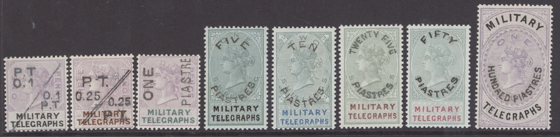 1886 Surcharges, 0.1 P.T. on 1d. to 100pi on £1 set of eight, lightly mounted or unmounted mint. A fine set. B.P.A. Certificate (c.1957), three sheet margins subsequently removed. S.G. MT9-16, £3400. Photo