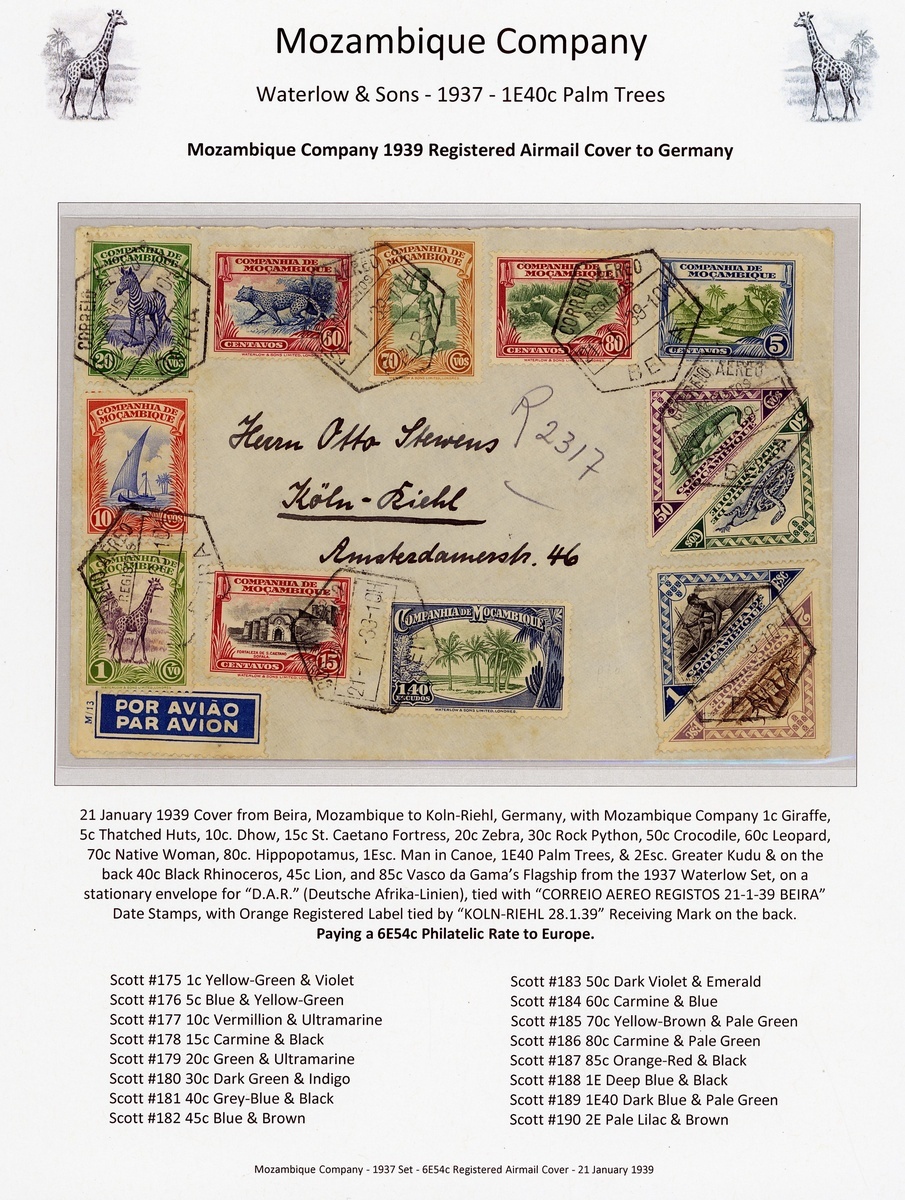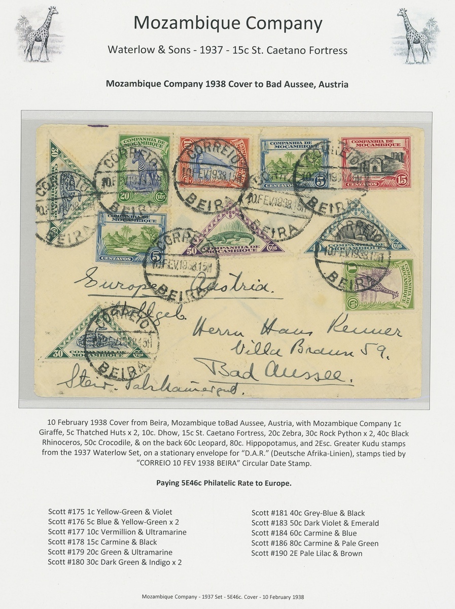 A fabulous collection of twenty-one covers illustrating the different postage rates to Europe and USA, including one 15c Southern Africa printed matter rate cover.