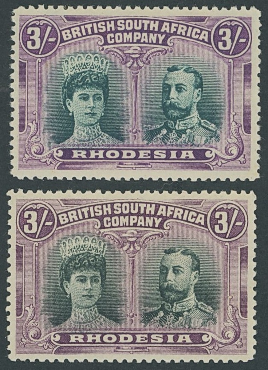 3/- green and violet (shades) (2), fine mint. S.G. 158 var.