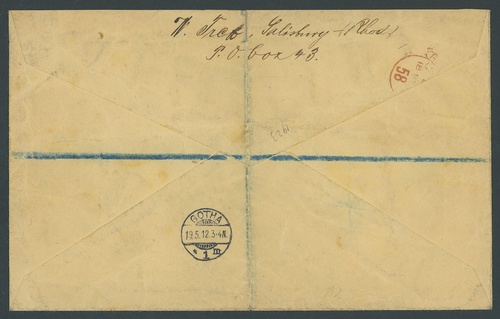 1912 (26 Apr.) large envelope Registered to Gotha, Germany bearing Arms 3d., 1909-12 2d., 2½d, 3d., 6d. and 1/- in combination with Double Head ½d., 1d., 2d., 2½d., 4d. and 6d. all tied by