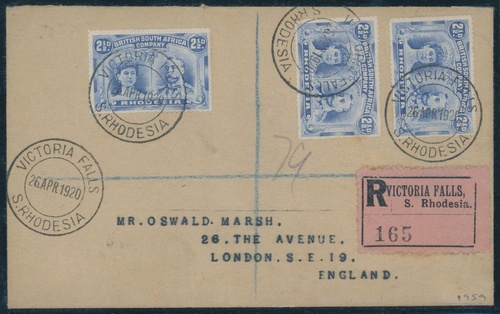 1920 (26 Apr.) 'Oswald Marsh' envelope sent Registered bearing 2½d. (3) all tied by