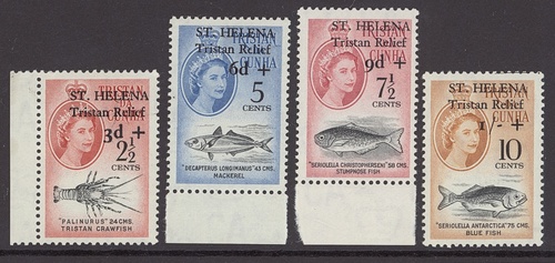 1961 (12 Oct.) Tristan Relief 2½c. +3d. to 10c. + 1/- set of four, all but the 10c. + 1/- marginal; lightly mounted mint, fine and very rare. A.P.S. Certificates (1972) for each value. S.G. 172-175, £8,000