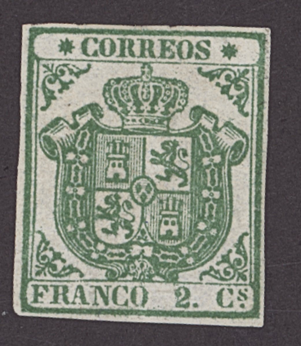 1854 (1 Jan- Nov.) 2c. green on thin paper, unused without gum, tiny upper right corner crease not affecting the fine appearance. Exfima Certificate (1978). S.G. 32, £2,500