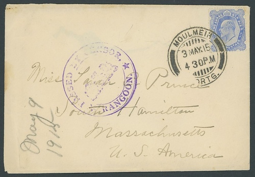 1915 (5 May) - 1916 (11 Apr.) envelopes (26, three registered and one from USA), postcards (7, one from USA) and pieces (7), virtually all addressed to USA, each showing seriffed circular