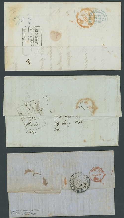 1847-58, five entire letters, three to London, one to Appleby, the other to Marseilles, markings include "