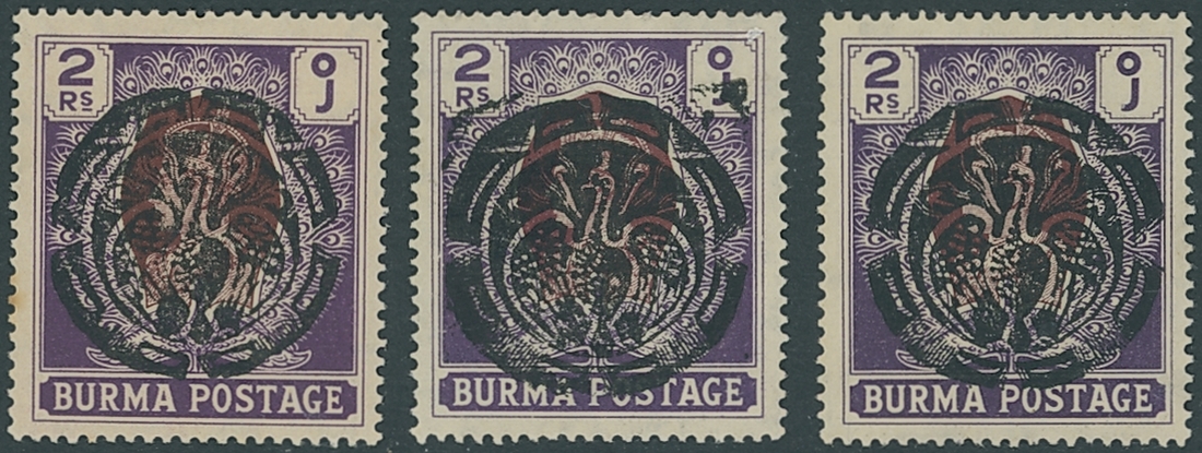 Overprinted at Myaungmya - S.G. Types 2 and 3