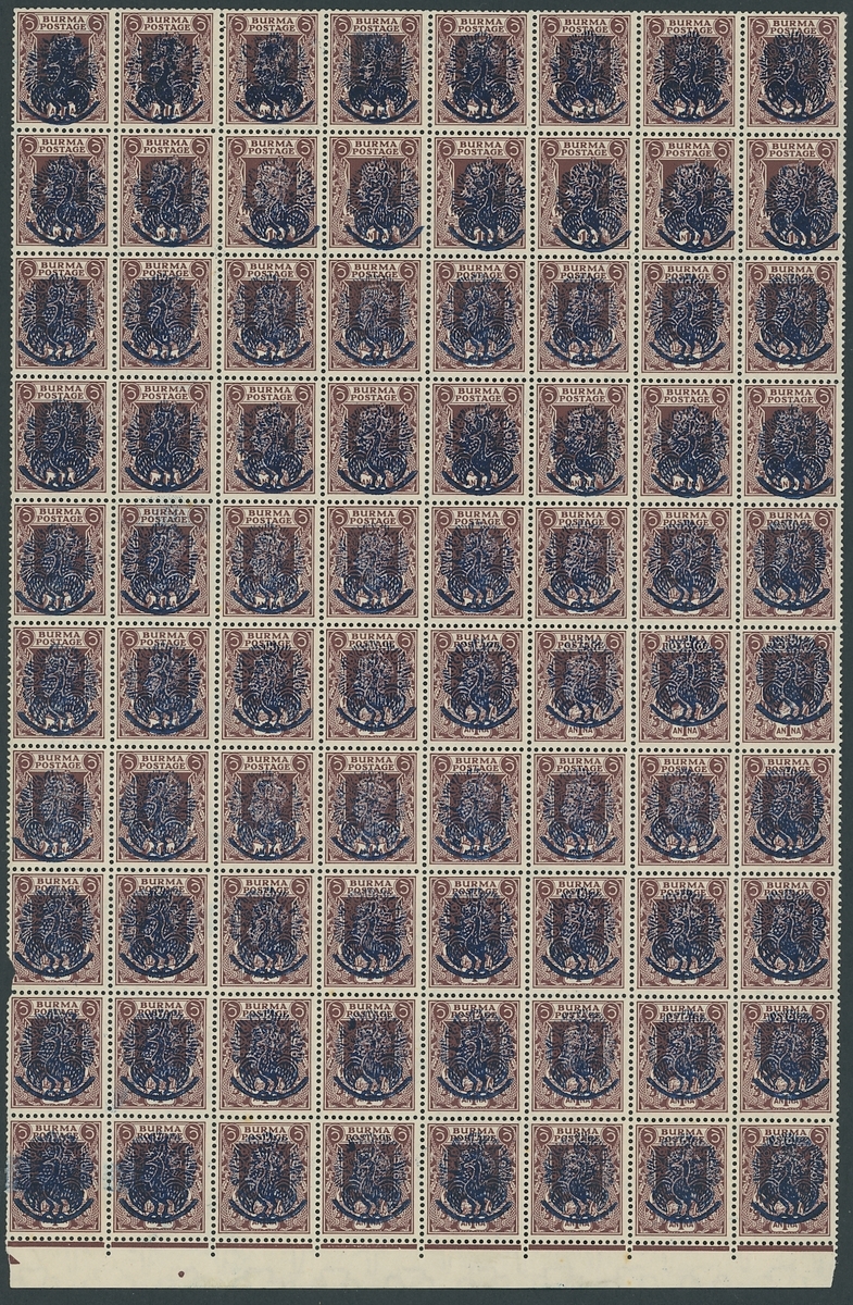 1a. purple-brown, typo marginal block of eighty (8x10) from the foot of the sheet in State 1 (pre pin flaw), fresh mint with nearly all unmounted, a few severed perfs between two vertical rows and one stamp with a corner defect, otherwise fine and a rare multiple. S.G. J29, £800+