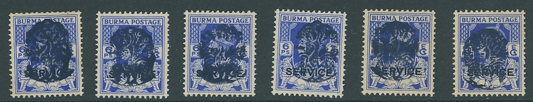 6p. bright blue, six examples, unused with large part or full original gum, fine. S.G. J34, £1,080