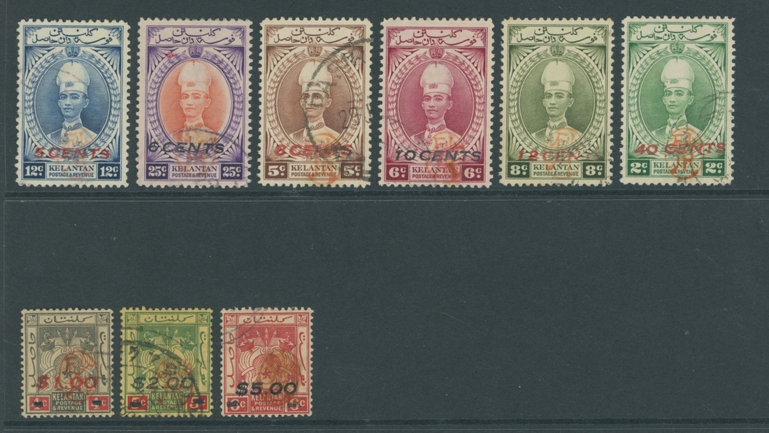 5c. on 12c., 6c. on 25c., 8c. on 5c., 10c. on 6c., 12c. on 8c., 40c. on 2c., $1 on 4c., $2 on 5c. and $5 on 6c., fine used. ISC JK4-JK8, JK10, JK38-JK40, $3,800+; S.G. J19-J23, J26, J28-J30, £1,480