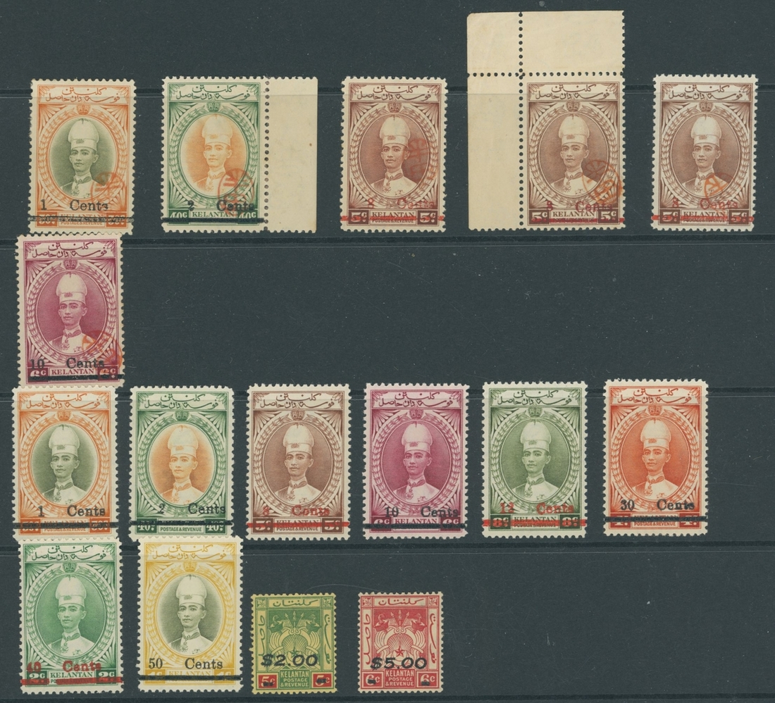 1c. on 50c., 2c. on 40c., 8c. on 5c. (3) and 10c. on 6c., fine mint; also 1c. on 50c., 2c. on 40c., 8c. on 5c., 10c. on 6c., 12c. on 8c. 30c. on 4c., 40c. on 2c., 50c. on 1c. $2 on 5c. and $5 on 6c. mint remainders without handstamp. S.G. cat. £1,075+
