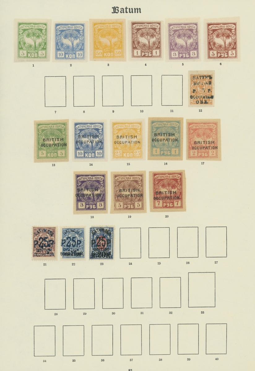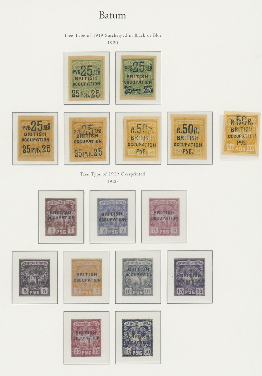 1919-20 mint selection on album leaves, noting 1919-20 15r. on 1k. orange, 1920 (Jan.) values to 50r. on 5k., 1920 (Feb.) 25r. trio, two with blue surcharge, 1920 (Apr.) range, etc. Generally fine, with the odd forgery. A range for the specialist.