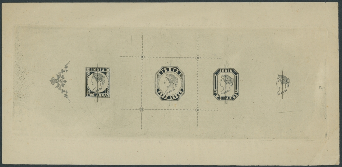 1916 recessed reprint from the defaced copper plate, comprising 2a. square design (Spence 2a), 4a. with wavy lines and rosettes (Spence 6a), 2a. octagonal design (Spence 3a) and 4a. head only (Spence 50b). This item is not mentioned by Spence, very rare. Photo.